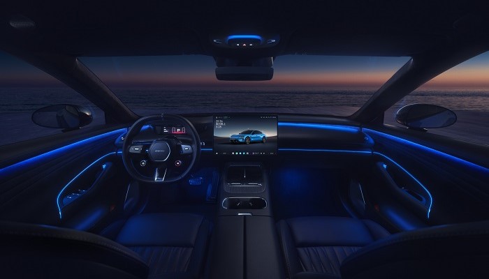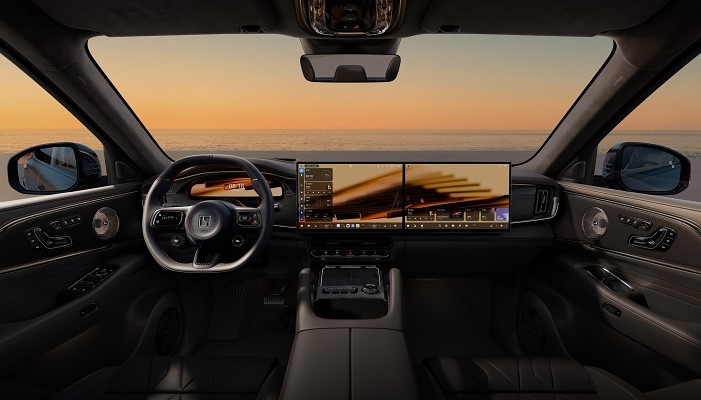 内饰部分,新车采用中控屏与副驾屏组成的双联屏布局,同时保留液晶仪表和抬头显示。车内提供多种配色方案,座椅调节及加热、通风等功能被布置在门板区域。后排则继续强调大车应有的舒适属性,提供全景天窗、车顶屏幕、电动调节座椅和电动腿托,并配备电动遮阳帘、电动脚踏以及较宽的中央扶手,后备厢最大容积可扩展至2200升。