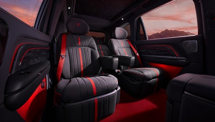 内饰部分,Ultra版提供专属倾橙配色,黑武士版则进一步加入丹墨配色、甲胄绗缝座椅以及更多碳纤维材质,氛围上更偏性能豪华取向。座舱为6座布局,二排独立座椅、车载冰箱、后排娱乐屏、音响系统和多区舒适功能都维持在这一价位应有的完整度,核心卖点围绕多人出行、商务和家庭场景平衡。